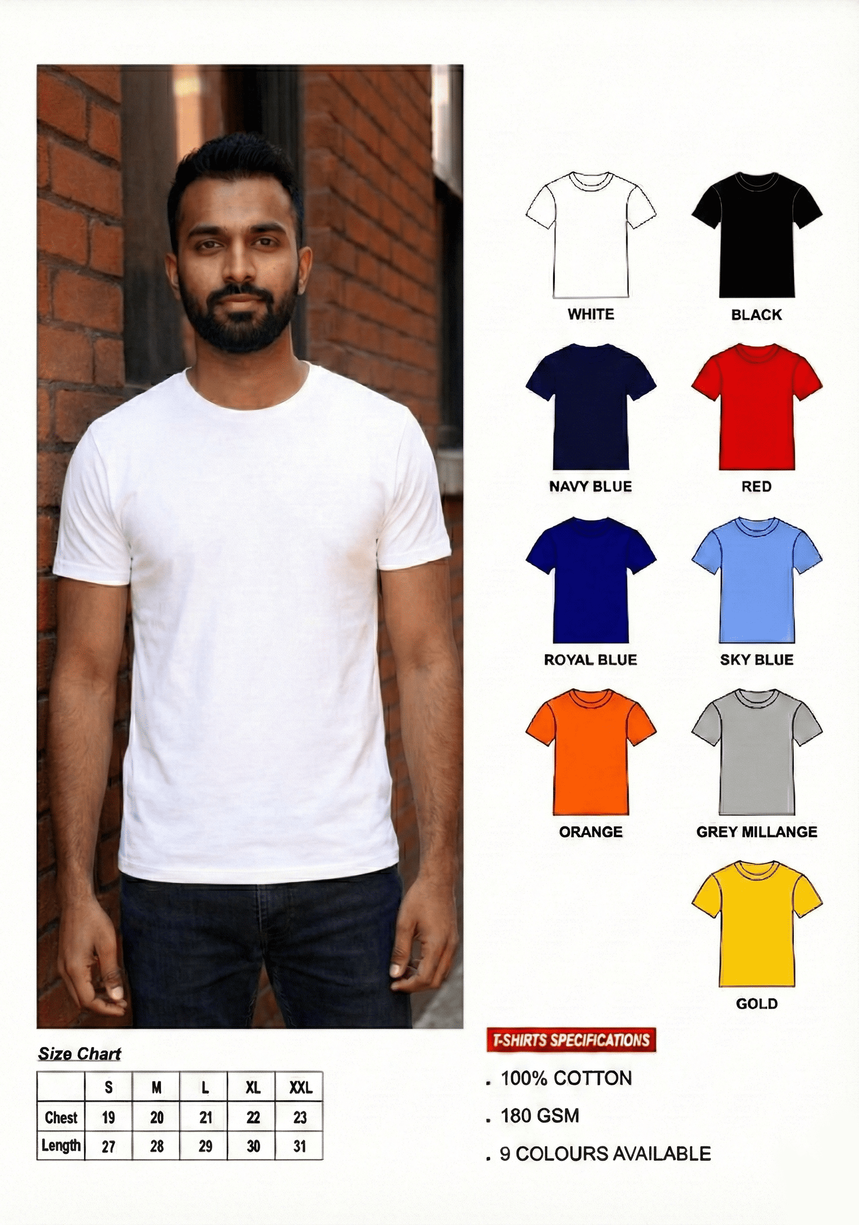 Available in: Combed Cotton • Bio-Washed • Regular Fit